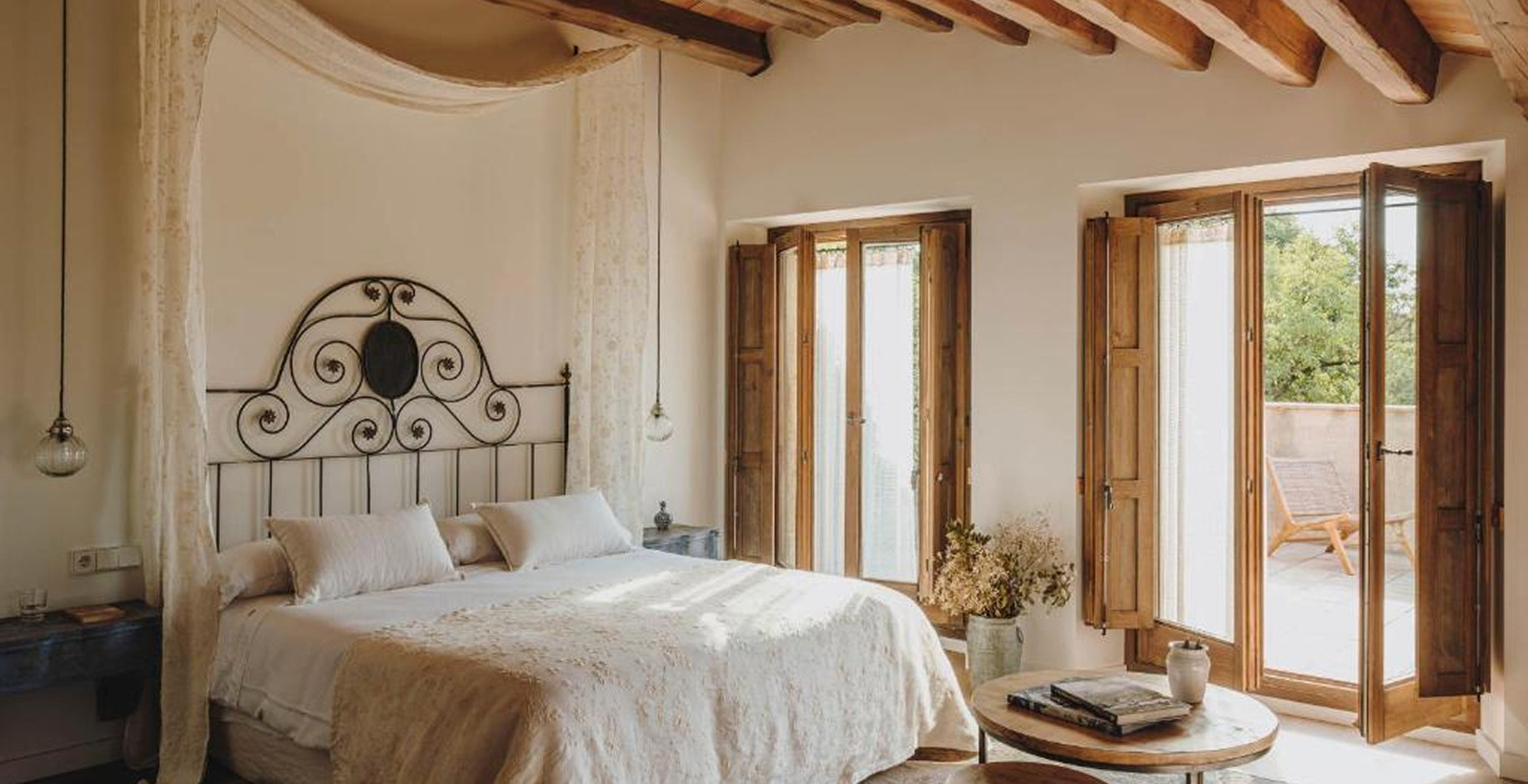 Las habitaciones, inspiradas en artistas y escritores como Colette, Dalí, Mercè Rodoreda o Josep Pla, reflejan un gusto delicado y contemporáneo. Muebles recuperados, tonos suaves y texturas naturales crean una sensación de casa habitada, elegante y viva.